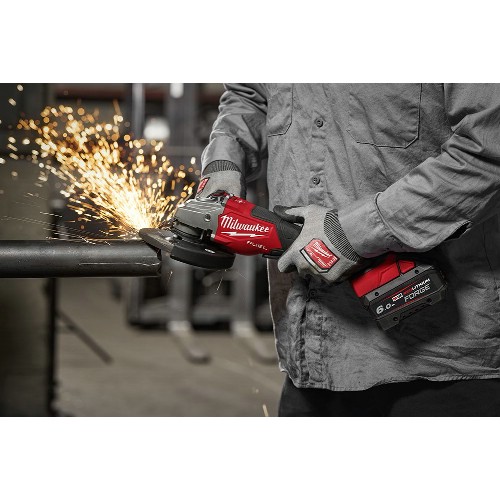 Kraftig og effektiv 150 mm vinkelsliper 18 V Li-Ion med Powerstate børsteløs motor. Kan håndtere opptil 145 kutt i 2" kabelrør per ladning (5,5 Ah). Avansert elektronisk beskyttelse mot overbelastning, overoppheting og utladning. Motorbrems. Anti-tilbakeslagsbeskyttelse. Ikke-låsbar bryter med sikkerhetsfunksjon hindrer automatisk start. Verktøyfrie skivebytter med Fixtec system. Beskyttelsesdeksel som enkelt og raskt justeres uten nøkkel. Antivibrasjonshåndtak. Avtakbart støvskjold for å hindre støvinntrengning. Fleksibelt batterisystem, passer til alle Milwaukee M18 batterier.