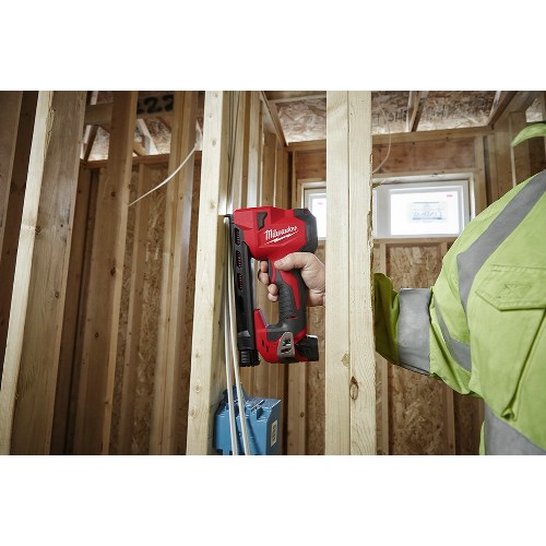 M12kabelstiftemaskin.Dobbelt så rask enn en manuell stiftinstallasjon.Bevegelige kabelføringer.DryFire lockout.Kraft til å drive 25 mm stifter tilstrekkelig inn i vanlige innrammingsmaterialer.Stor magasinkapasitet med plass til 45 stifter.LED arbeidslys.Avfyrer opptil 1200 stifter per lading på et REDLITHIUM2,0 Ah batteri.Vendbar beltekrok.Kun kompatibel med Milwaukeestifter.Vekt med batteri 2,3 kg.Leveres uten batterier og lader.